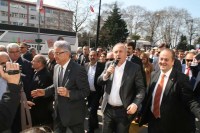 Kent merkezine gelen İnce, "Size Yalova usulü referandum çalışması göstereceğim" diyerek, Devrim Bulvarı üstünde bulunan işyerleri ve mekanlardaki vatandaşları selamladı, "Hayırlı olsun" temennisinde bulundu.
