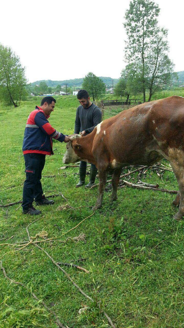 çıkararak kurtardı. İneğin sahibi Seracettin Yıldız, ineğini kurtaran itfaiye