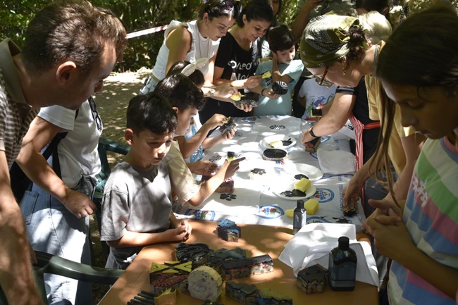 İki gün gerçekleşen etkinliğin ilk günündeki Anne- Çocuk kazı atölyesinde; çocuklar, “bir kazı nasıl yapılır”, “kazı yaparken hangi aşamalar gerçekleştirilir” gibi konuları deneyimlerken, aileler de eş zamanlı olarak +1 sanat çalışmasıyla, mağara motiflerinden ilham alarak çizimler yaptılar ve ardından mağara sembollerinden olan güneş kültü ve birçok motifi kullanarak tahta baskı çalışmasına katıldılar. Yoğun ilgi ile karşılanan atölye renkli görüntülere sahne oldu.