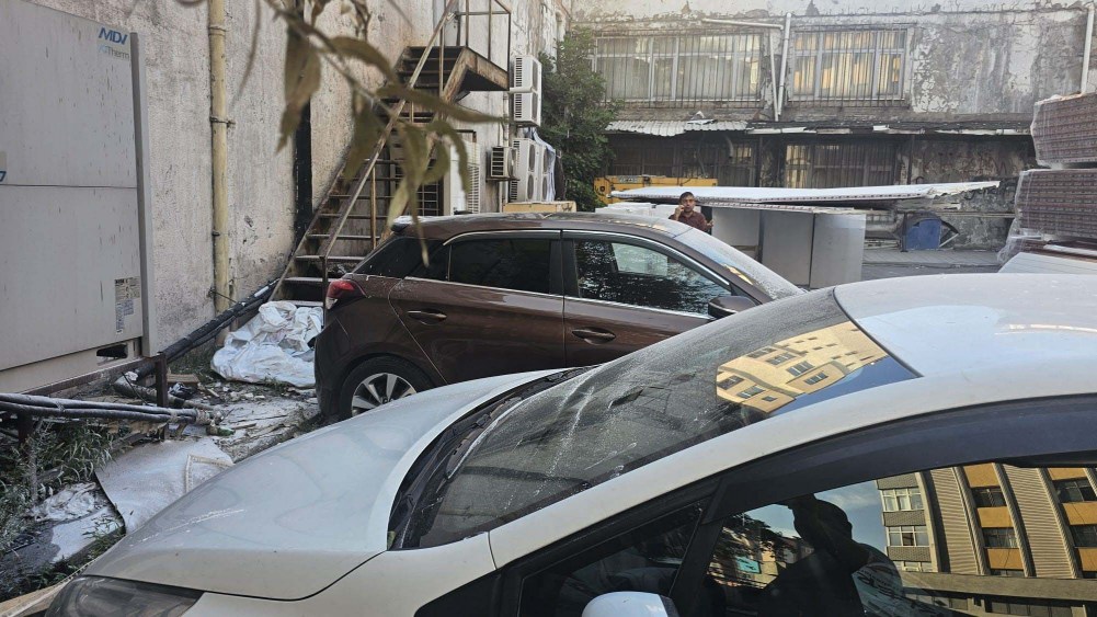 İnşaattan düşen malzemeler araçlara zarar verdi