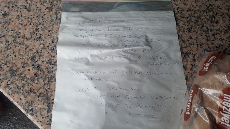 alarak uzaklaşan kişi ya da kişiler iş yeri sahiplerine bıraktı. Notta ' İnsan