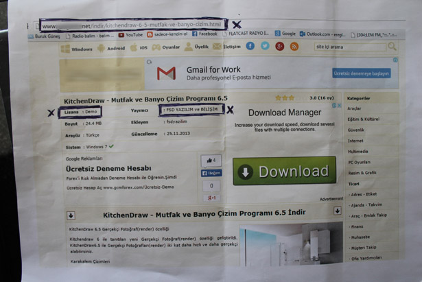 İşi nedeniyle internette demo olarak görünen dekorasyon programını incelemek, işine yarayıp yaramayacağına bakmak için indirdiğini söyleyen İlhan Yüksel, önce polis ve avukatların gelip ofisini bastığını, ardından da 10 ay hapis cezası aldığını söyledi. Mahkemeye sunduğu delillerin kabul edilmediğini dile getiren Yüksel, kendisi gibi aynı durumda olan ilçede 8-10 kişinin bulunduğunu anlattı. Yüksel mutfak dekorasyonu işi ile uğraştığı için çizim programına her zaman ihtiyaç duyduğunu belirterek "Arkadaşımda gördüm programı. İnternette araştırıp baktığımda burada demo olarak yazıyor. Herkesin, normal sıradan bir vatandaşında indirip kullanabileceği program. Ben bu programı demo olarak indirdim ve bilgisayarıma kurdurdum. Programın orjinalini kurmadım. İş yerinde arama kararı ile bilgisayarıma el konuldu ve hakkımda dava açıldı. İfadem sırasında da internet ekranındaki görüntüyü mahkemeye sundum. Hatta burada lisans kısmında 'Demo' yazan yeri ve firmayı işaretledim. O sayfadaki linke tıkladığınızda programın sahibi firmanın kendi internet sitesi açılıyor. Orada da demo yazıyor. Neticede hapis kararına giden bir karar çıktı" dedi.