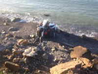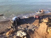 Zonguldak'ın Ereğli ilçesinde ailevi ve psikolojik sorunları olduğu ileri sürülen 22 yaşındaki sürücü arabasıyla denize uçtu. Kazadan şans eseri yara almadan kurtulan genç sürücü, ağlayarak arabadan çıkarıldı.