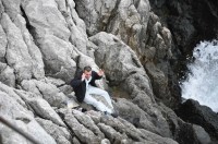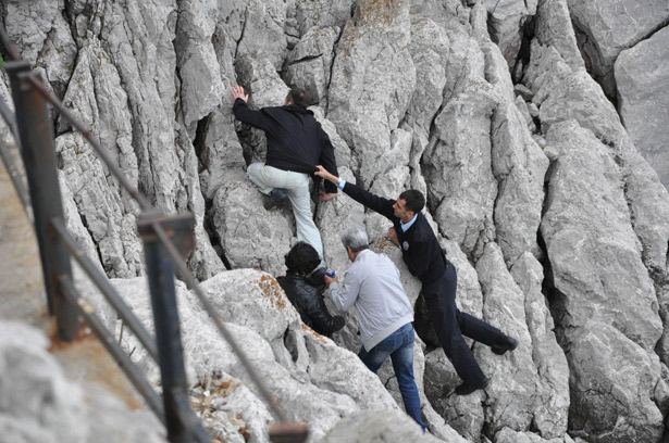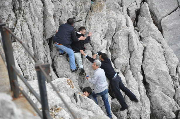 Zonguldak'ta 155 hattına gelen ihbarı değerlendiren ekipler, Fener semtindeki kayalıklara geldi. Eşinin kendisini terk ettiği iddiasıyla kayalıklara inen Ramazan M. adlı genç, polise zor anlar yaşattı. Bir tarafta şiddetli dalgalar kayalıklara vururken diğer tarafta polis gencin yukarı gelmesini istedi. Yaşadıklarını komisere anlatan Ramazan M., alkolün etkisiyle ayakta durmakta güçlük çekti. Yaklaşık bir saat süren ikna çabaları olumlu sonuç verdi. Deniz polisi de botla kayalıklara yakın mevkide hazır bekledi. AFAD ekipleri de olay yerine halat getirerek hazır bulundu.