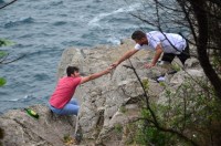 Genci bulunduğu bölgeden çıkartmaya çalışan ekipler, bölgeye psikolog ve gencin karşılıksız sevgi beslediği genç kızı getirdi. Yoğun ikna çabalarının ardından kayalıklardan çıkarılan genç ekip otosuna bindirilerek olay yerinden uzaklaştırıldı.