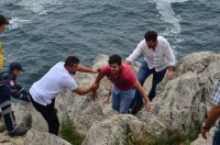 Edinilen bilgiye göre aynı iş yerinde çalıştığı arkadaşına aşık olan ve sevgisine karşılık bulamayan Akın Ü. (23), kayalıklara çıkarak intihar etmek istedi. Akın Ü.'nün şüpheli hareketleri üzerine durum polis ekiplerine haber verildi. Olay yerine polis ekipleri, AFAD ve 112 ekipleri sevk edilirken, Sahil Güvenlik botu da gencin bulunduğu kayalıklara yaklaştı. Polis ekipleri gencin yanına inerek uzun süre genci ikna etme çabalarını sürdürdü.