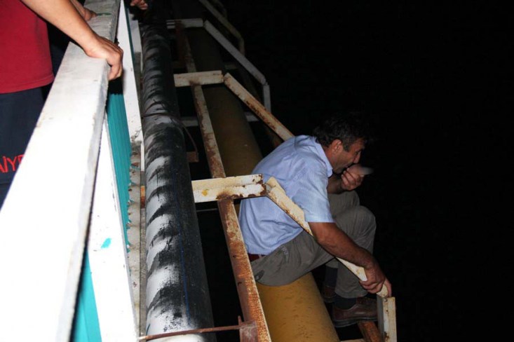 Edinilen bilgiye göre, Zonguldak'ın Çaycuma ilçe girişinde bulunan köprünün korkuluklarına çıkan Erdoğan Ö. (47) isimli vatandaş, doğalgaz borularının üzerinde oturarak sigara içmeye başladı. Şahsı gören vatandaşlar hemen polise haber verdi. Erdoğan Ö. polis ekipleri tarafından ikna edilerek köprüden indirildi.