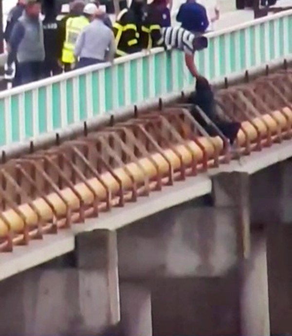 kişi çıktığı köprü korkuluklarından yaka paça çekilerek kurtarıldı.