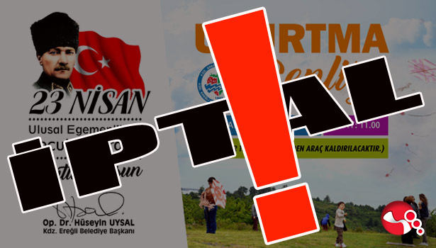Kdz.Ereğli Belediyesi Kültür ve Sosyal İşler Müdürlüğü tarafından 22 Nisan Cumartesi günü düzenleneceği açıklanan Uçurtma Şenliği programı iptal edildi.
