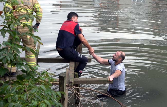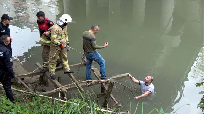 Irmağa atlayan şahıs, polis ve itfaiye ekiplerinin ikna çalışmalarının ardından sudan çıkarıldı.