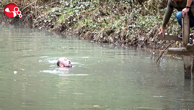 Bartın Gazhane Parkı'nın arkasında yürüyen Serhan Ç. isimli şahıs, üstündeki kıyafetleri ile birlikte ırmağa atladı. Şahsı gören vatandaşların ihbarı üzerine bölgeye, polis, sağlık ve itfaiye ekipleri sevk edildi. Olay yerine giden polisler, uzun süre alkollü olduğu ileri sürülen Serhan Ç'yi ikna etmeye çalıştı. Zaman zaman ırmakta yüzen, bazen de suyun altına giren şahsı polis ekipleri uzun süre ikna etmeye çalıştı. Üzerindeki yeleğini çıkaran Serhan Ç., "bunu eşime veren" diyerek, yeleği polislere doğru attı. Tekrar suya giren Serhan Ç, yaklaşık 30 dakika boyunca suyun içerisinde kaldı. Serhan Ç., kendisine ağaç dalı uzatan polis, halat uzatan itfaiye ve yaşananları izleyen vatandaşların çabası ile ikna edilerek, sudan çıkarıldı. Sudan çıktıktan sonra, "Buraya ölmeye geldim, yine olmadı" diyen Serhan Ç., sağlık ekiplerinin ilk müdahalesinin ardından ambulansla Bartın Devlet Hastanesi'ne götürüldü.