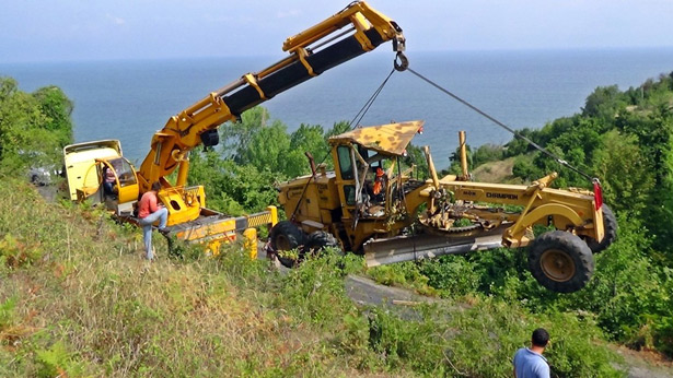 Geçtiğimiz hafta Çaycuma istikametinden Çatalağzı beldesine gitmekte olan Muhammet Ö.'nün kullandığı iş makinesi Türkali-Göbü karayolunda önüne büyükbaş hayvanın çıkmasıyla direksiyon hakimiyetini kaybedip devrilen ve yaklaşık 10 metrelik uçurumda kalmasıyla birlikte bugün olay mahallinde iş makinesi vinçler yardımıyla çıkarıldı. Sabah saatlerinde başlayan çalışmalar doğrultusunda Işıkveren Jandarma Karakol Komutanlığı ekipleri de olası bir olaya karşı da görev aldı. Işıkveren bölgesinden gelen 2 adet 120 tonluk vinçler kaza mahallinde konuşlandırıldı. . İş makinesinin çıkarılması sırasında uzun araç kuyrukları oluştu. Türkali-Göbü karayolunda ise yaklaşık 2 saat kapalı kaldı. Vinçlerin ucuna bağlanan halatlar yardımıyla İş makinesi uzun uğraşlar sonucunda uçtuğu yerden çıkarılarak TIR'a konuldu. TIR'a konulan iş makinesi Ankara'ya götürüldüğü kaydedildi. Yapılan çalışmaların ardından 2 saat süreyle kapalı kalan karayolu araç trafiğine açıldı. Bu arada yoldan çıkıp devrilen iş makinesinin Zonguldak-Karabük-Irmak hattında devam eden demiryolu çalışmalarında kullanıldığı ve Çatalağzı istasyonundaki çalışmaları yapmak üzere beldeye gittiği sırada kazanın yaşandığı belirtildi.