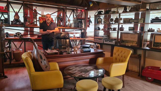 Özel sektörde canlı et ve balık sektöründe hizmet veren 48 yaşındaki Ali Çalışkan'ın 15 yıl önce başlayan eski eşya merakı zamanla gelişti. Aldığı bir radyo ile antika merakı artan Çalışkan, zaman içinde bürosundaki eşya sayısını 300 üzerine çıkardı. Çalışkan eski eşyaların ilgisini çektiğini daha sonra bir tutku haline dönüştüğünü anlattı. Antikalarının arasında lamba ve çömlek, gramofon, dikiş makinesi, gaz lambaları, video oynatıcı, kamera, eski madeni paralar, daktilo ve 100 yıllık radyolar da bulunan Çalışkan'ın işyerinde bin parça eski eşya yer alıyor. Müşterilerin de ilgisini çeken koleksiyonda en çok radyolar ilgi görüyor.