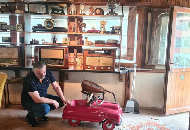 Zonguldak'ın Alaplı ilçesinde eski eşyalara merakı olan 48 yaşındaki Ali Çalışkan; aralarında 100 yıllık radyonun da bulunduğu eşyaları, iş yerindeki bürosunda sergiliyor.