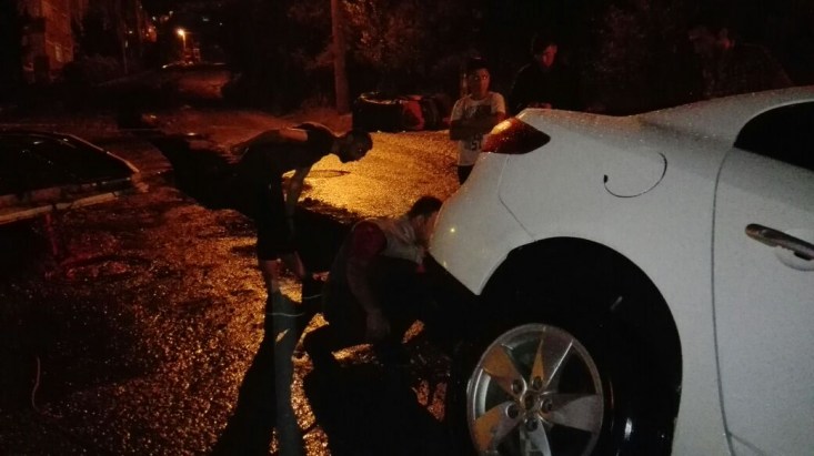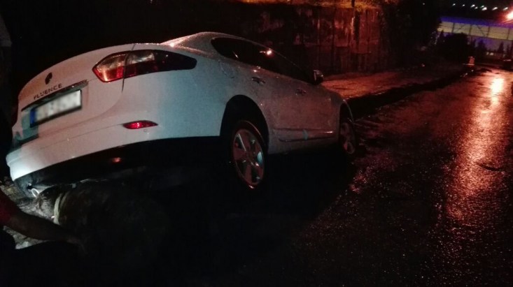 İŞARETLEME OLMAYAN ÇUKURA OTOMOBİL DÜŞTÜ...