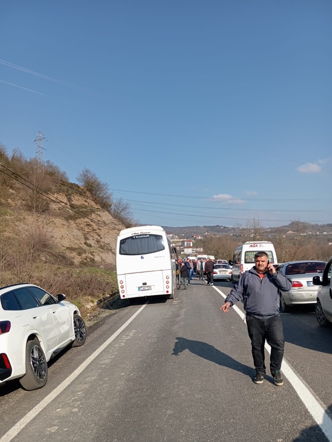 Kazadan dolayı yol trafiğe kapandı. Ekipler, yaralıların sevkinin ardından yolun açılması için çalışma başlattı.