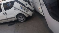 hafif ticari kamyonetin bagaj kapağına çarptı. Kazada bir kişi yaralanırken,