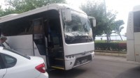 taşıyan 67 LN 499 plakalı servis midibüsü sürücüsü, malzeme boşaltmak için