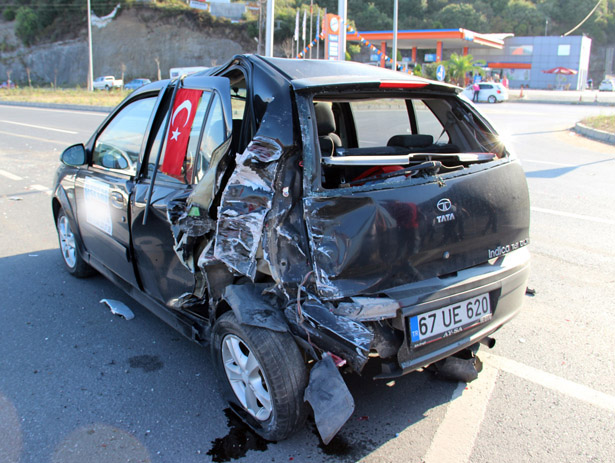 İddiaya göre, Ereğli ilçesinden Alaplı ilçesine tekstil işçilerini götüren Göksu Karaman idaresindeki 67 LZ 948 plakalı işçi servisi, önünde seyir halinde olan sürücü adayı Burçin Kılıç idaresindeki 67 UE 620 plakalı otomobile çarptı. Kazada işçi servisinde bulunan tekstil işçilerinden Nevin Kamalak, Hülya Cambaz, Funda Karaman, Nazan Sarı, Ayşe Ünlü, İrfan Demircan, Sibel Karaman, Ceylan Altay ile otomobil sürücüsü Burçin Kılıç ile işçi servisi sürücüsü Göksu Karaman yaralandı. Yaralılar olay yerine çağrılan üç ayrı ambulans ve özel otomobillerle Kdz. Ereğli Devlet Hastanesi ve özel hastanelere sevk edildi. Yaralıların sağlık durumlarının iyi olduğu, bir kısmının tedavilerinin ardından taburcu edildiği öğrenildi. Kaza yapan araçlar, çekici vasıtası ile yoldan kaldırıldı.