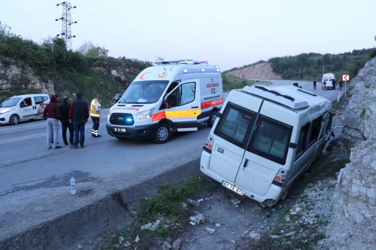 çarparak durabildi. Kazada sürücü İsmail Demircan'ın yanı sıra minibüste