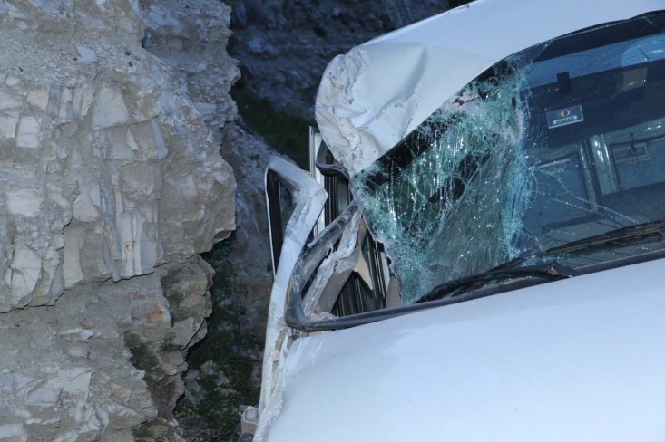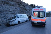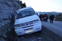 hakimiyetini kaybetti. Yoldan çıkan minibüs su kanalına düşerek kayalara