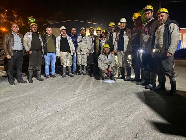 Madenciler tatbikatın ardından mesailerini tamamladı.