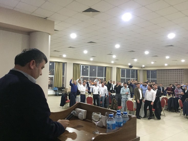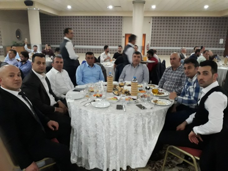 Şube yönetim kurulu üyelerinin de hazır bulunduğu yemekte Ercan'ın karşılıklı görüş alışverişinde bulunan işçiler, daha sonra çalan müzik eşliğinde eğlendiler.