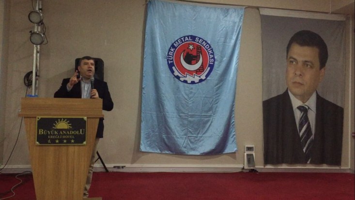 Zonguldak'ın Ereğli ilçesinde, Türk Metal Şube Başkanı Metin Ercan'ın, Tat Metal'de çalışan sendika üyesi işçilerle yemekte bir araya geldiği bildirildi.
