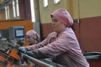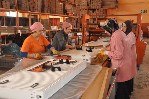 Zonguldak'ta 55 ülkeye panel radyatör ihraç eden fabrikada istihdam edilen 60 mağdur kadın, azimleri ve çabalarıyla erkeklere taş çıkartıyor.