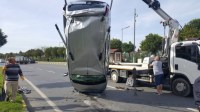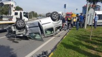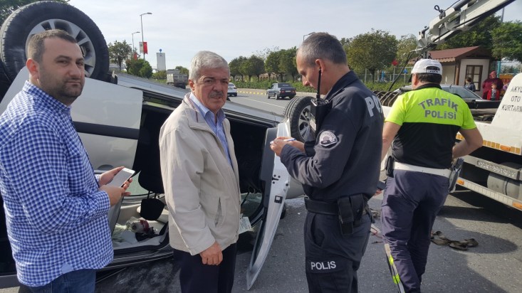 Nurettin S.nin kullandığı araçla çarpıştıktan sonra takla attığı görülüyor.
