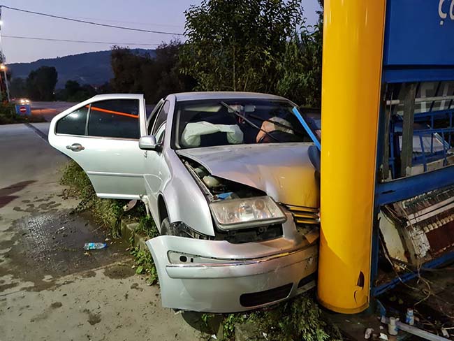 Zonguldak'ın Çaycuma ilçesi yakınlarında bir otomobil, akaryakıt istasyonunun ışıklı panosuna çarptı.