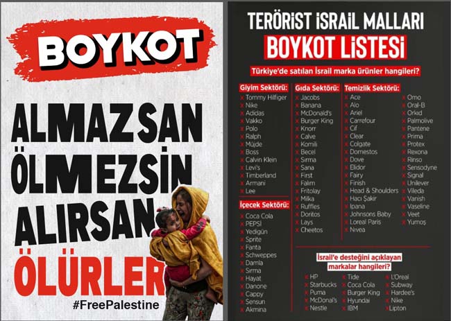 - Siyonist İsrail’e destek veren markalara karşı Boykot çalışmalarının yaygınlaştırılması ve yerli ürünlere teşvik çalışmaları devam edecektir.