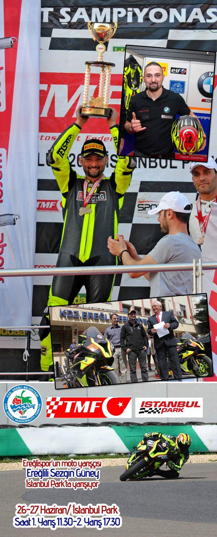 Ereğli Belediye Başkanı Halil Posbıyık, Kdz. Ereğli Belediyesi sponsorluğunda yarışan MT Racing motor takımı sporcusu Ereğlili Sezgin Güney, İstanbul Park'ta yarışacak.