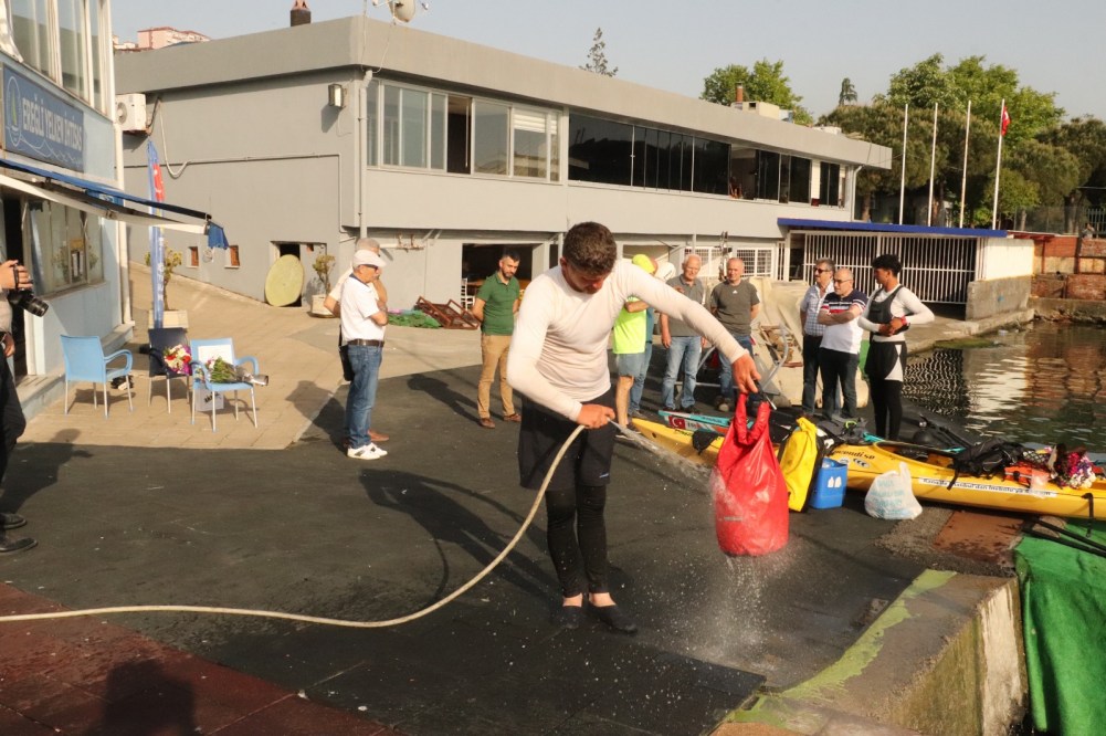 Yolculuk sırasında atıklarını poşetlediklerini ve uğradıkları alanda çöp konteynırlarını attıklarını ve bundan ötürü de kendilerine karşılamaya gelenlerin teşekkür ettiğini de hatırlatan Kara, "Uğradığımız rotalarda çöpleri yere atmamızdan dolayısıyla teşekkür edenler oldu. Onların iyi niyetinden şüphemiz yok ama insanlarımızın zaten bu görevi. Bu zaten bizim görevimiz. Denizi niye kirletelim? Hepimiz yüzüyoruz, kürek çekiyoruz. Kanolarımızın içerisinde muhafaza edip konakladığımız yerlerde atıyoruz." sözlerine yer verdi.
