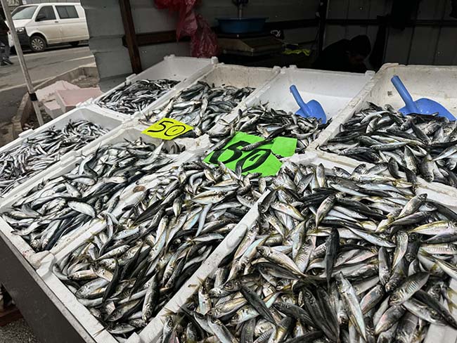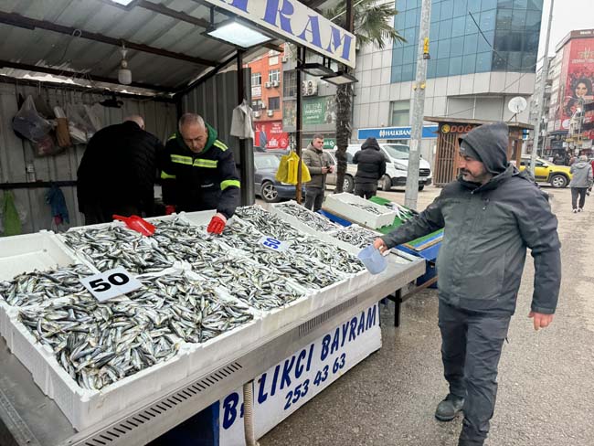 Diğer yandan; tezgahlarda yok denecek kadar az olan hamsi ise 150 liradan alıcı buldu. Balıkçı Zeki Beybeyoğlu, “Allah veriyor. Son 10 gündür istavrit bollaştı. Halkımız da rağbet gösteriyor. 50 lira şu şartlarda pahalı değil. 50 lira balık bedava diyoruz. Hamsi şuanda yok denecek kadar az. 125-150 lira. Sezon Allah nasip ederse Mayıs ayında bitiyor” dedi.