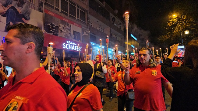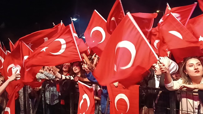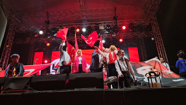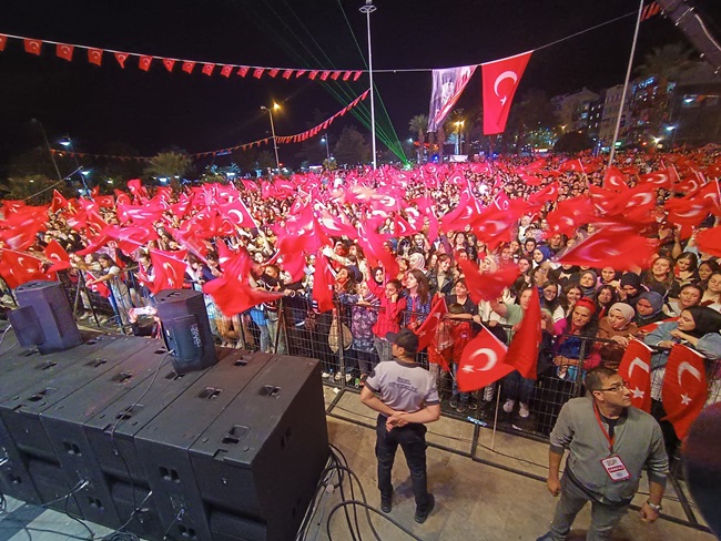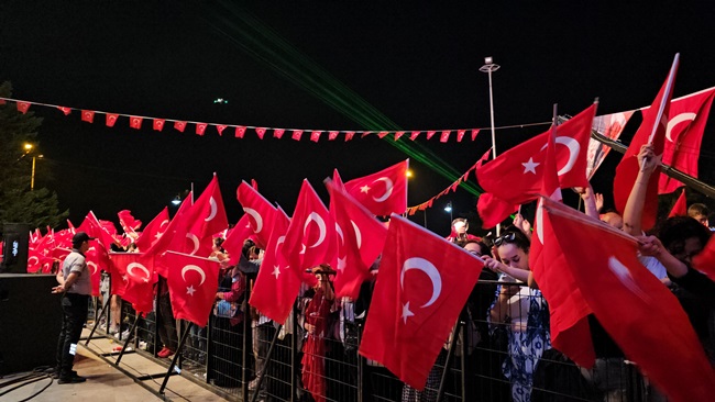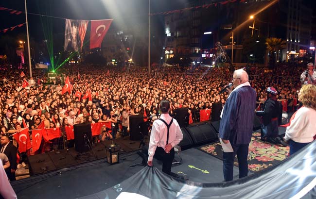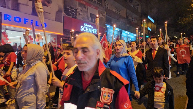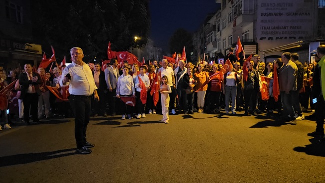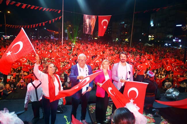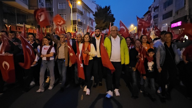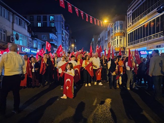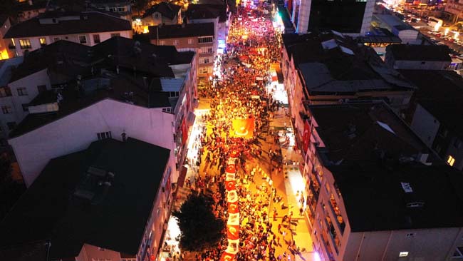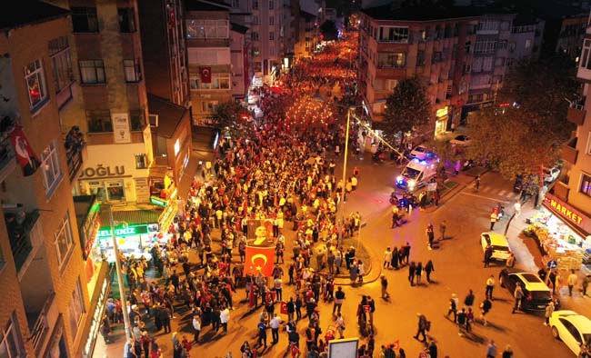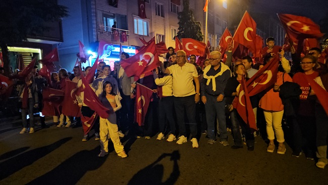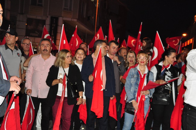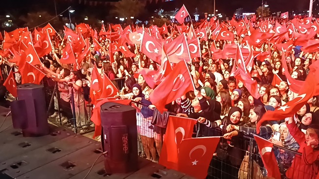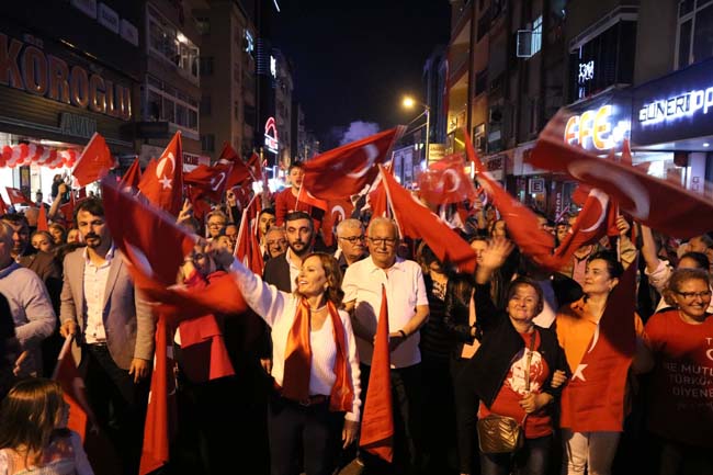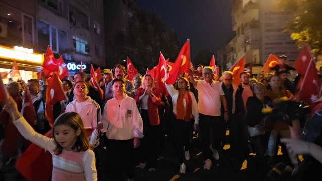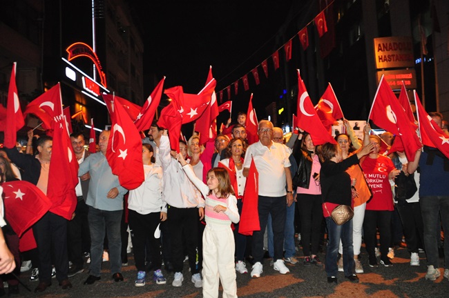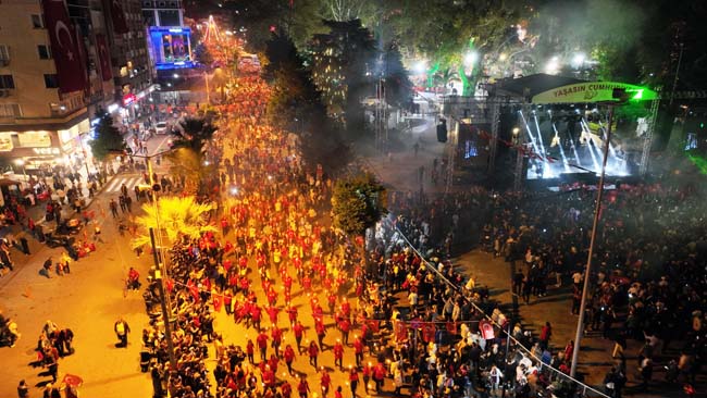 Atatürk ve Cumhuriyet sevgisini hep bir ağızdan haykıran, omuz omuza Türk Bayrağını dalgalandıran halk, sokakları insan seline döndürdü.