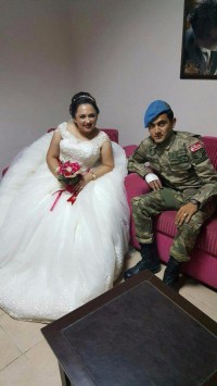 Salona Askeri elbisesi ile giren damat Ahmet Altay içinden geldiği için böyle damatlık yerine askerlik elbisesi ile salona girdiğini, kendisi, eşi ve salondakilerin duygusal anlar yaşadığını kaydetti.