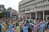 daha sonra dağıtılan yağmurluklarla eylemine devam etti. Gazipaşa Caddesinde