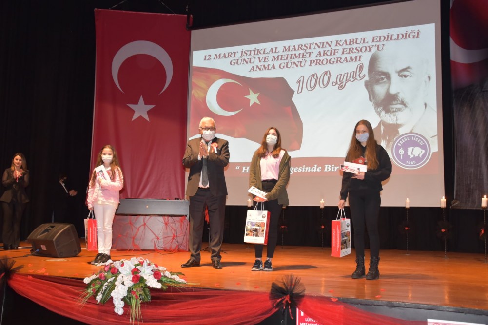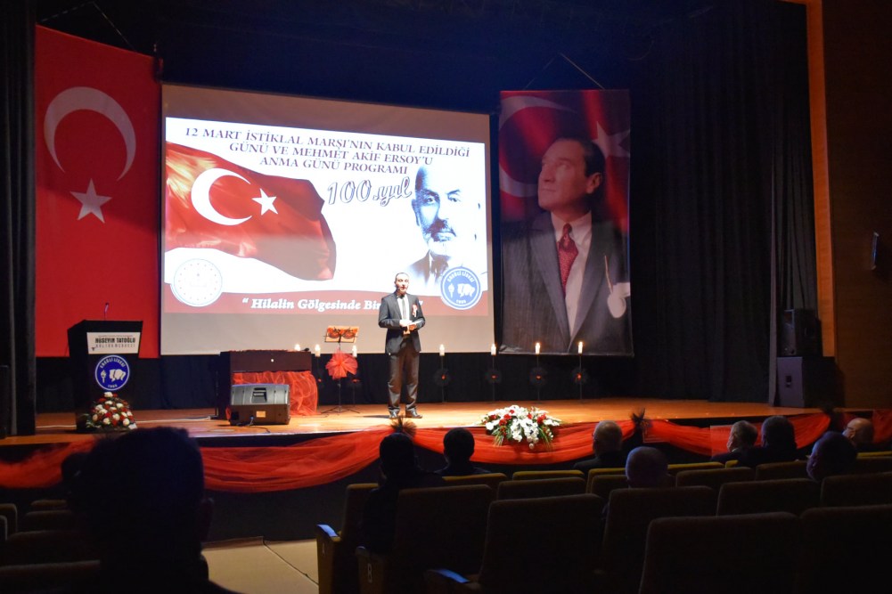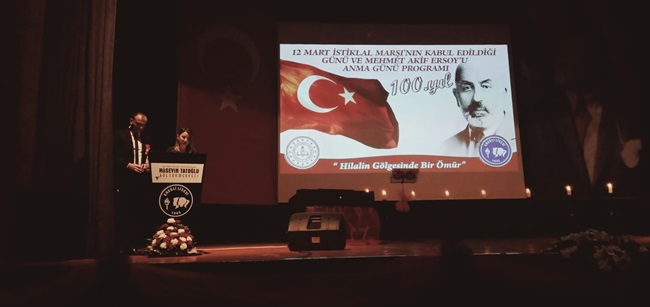 Zonguldak’ın Ereğli ilçesinde İstiklal Marşı’mızın kabulünün 100. Yıl dönümüyle ilgili olarak Hüseyin Tatoğlu Kültür Merkezinde program düzenlendi.
