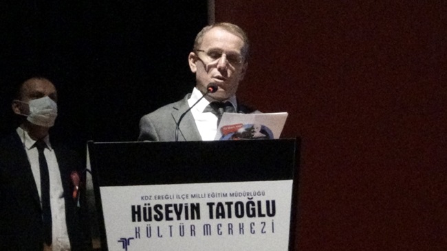 Hüseyin Tatoğlu Kültür Merkezinde düzenlenen programa Ereğli Kaymakamı İsmail Çorumluoğlu, Ereğli Belediye Başkanı Halil Posbıyık, Karadeniz Bölge Garnizon Komutanı Karadeniz Bölge ve Garnizon Komutanı Tuğamiral Taner Gün, Cumhuriyet Başsavcısı Huzeyfe Yücedağ, öğretmenler, öğrenciler ve davetliler katıldı.