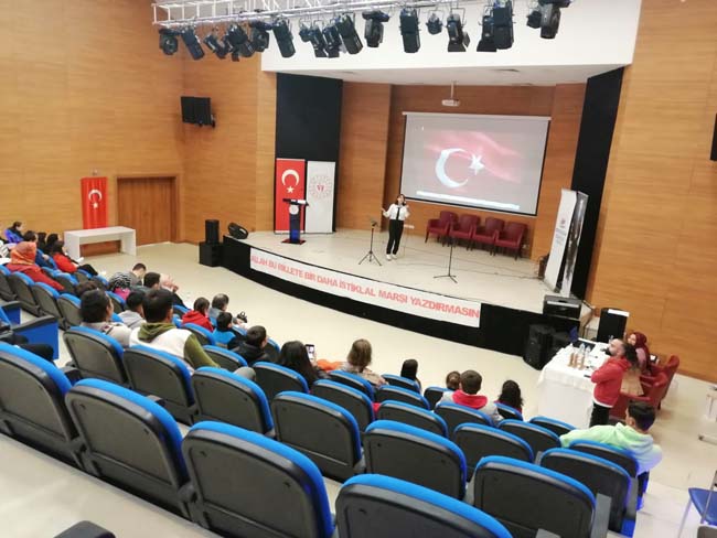 Yoğun katılım altında gerçekleşen yarışmada, gençler İstiklal Marşı’nı güzel okumak için bütün hünerlerini sergiledi.