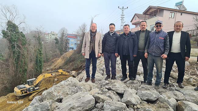 Zonguldak'ın Alaplı Büyük Tekke köyünde, toprak kaymalarına karşı tehlike arz eden noktalarda istinat duvarı yapım çalışmalarını sürüyor.