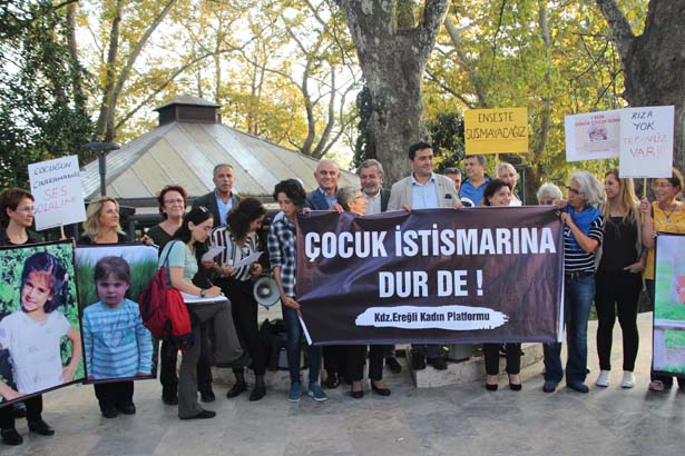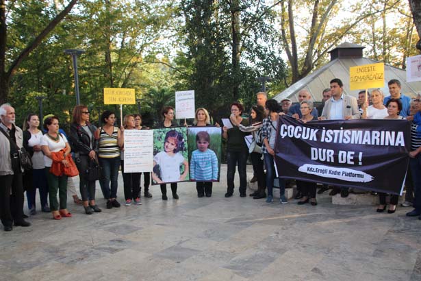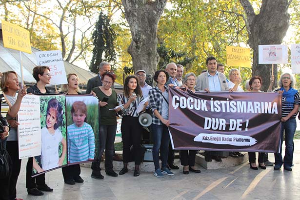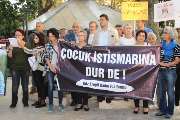 Zonguldak'ın Ereğli ilçesinde sivil toplum kuruluşlarının temsilcilerinin oluşturduğu Karadeniz Ereğli Kadın Platformu üyeleri, 1 Ekim Dünya Çocuk Günü nedeniyle, çocuk istismarı ve öldürülmelerine tepki göstermek için eylem yaptılar.