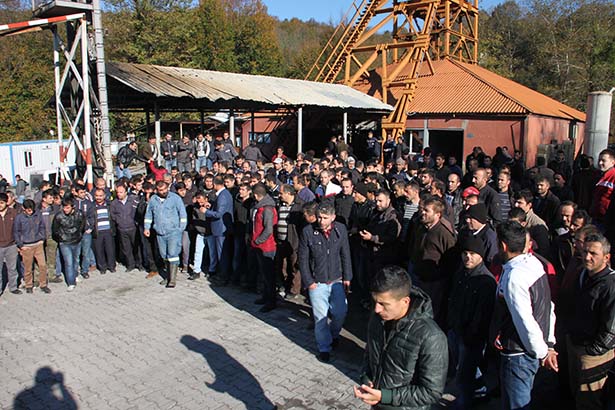 Zonguldak'ın Ereğli ilçesinde eylem yapan HEMA kömür işletmelerindeki işçiler, maaşlarının ödeneceği sözünü alınca madene indi.