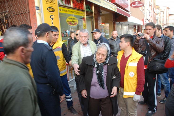 Kısa süre panik yaşayan kadın, yakınlarına teslim edildi. Yaşlı kadının akrabası olduğu öğrenilen bir kişi olayı görüntüleyen basın mensuplarına tepki gösterdi.