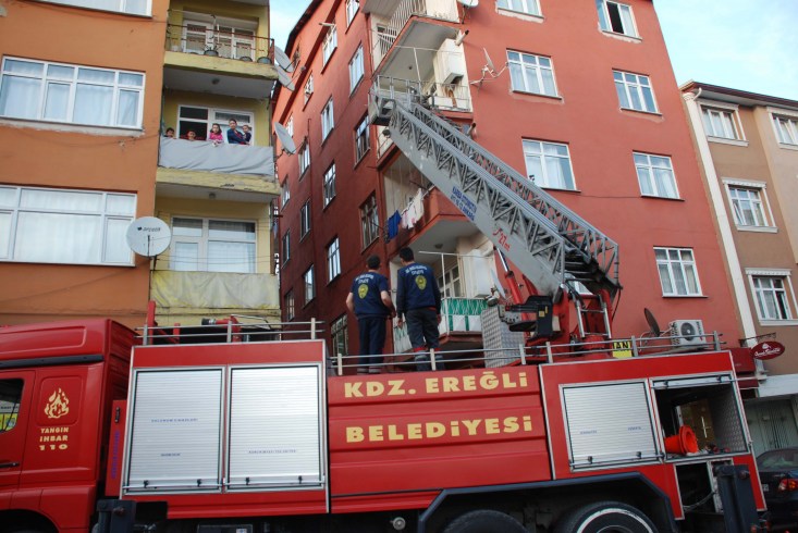 Karadeniz Ereğli'de evde mahsur kaldığı öğrenilen yaşlı kadın itfaiyenin yardımı ile evinden çıkarıldı.