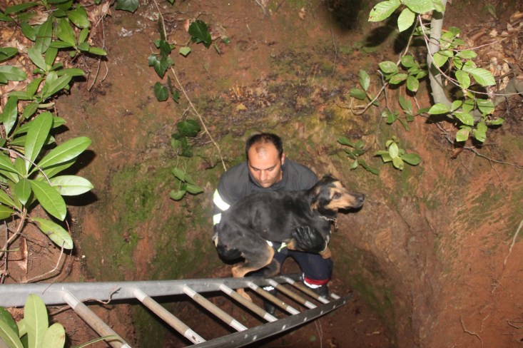 açılan kuyuya düşen köpeği ormanlık alanda 5 kilometre yürüdükten sonra