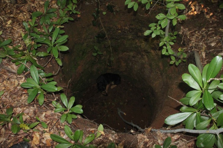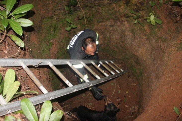 metrelik çukura düştüğünü fark etti. Kendi imkanları ile köpeği çıkarmaya