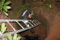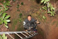 görevlisi merdivenle indikleri kuyudaki köpeği korkmaması için sevdikten sonra