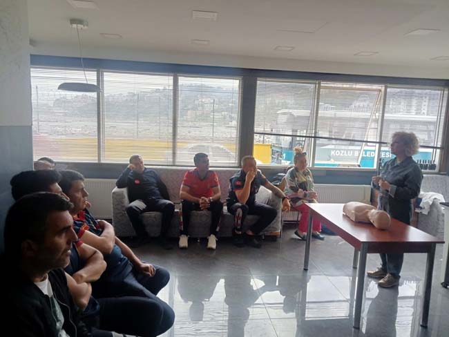 Zonguldak İl Sağlık Müdürlüğü ile Kozlu Belediyesi İtfaiye Müdürlüğü'nün ortak proje çalışması kapsamında itfaiye erlerine yönelik geniş kapsamlı olarak ilkyardım eğitimi verildi.